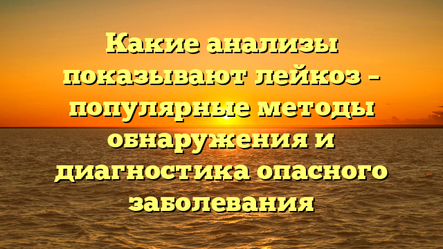 Лейкоз представляет собой онкологическое заболевание, которое поражает кроветворную систему и лимфатические узлы. Для точной диагностики и определения наличия лейкоза проводятся специальные лабораторные анализы. В этом разделе мы рассмотрим основные анализы, которые помогают врачам определить наличие лейкоза.