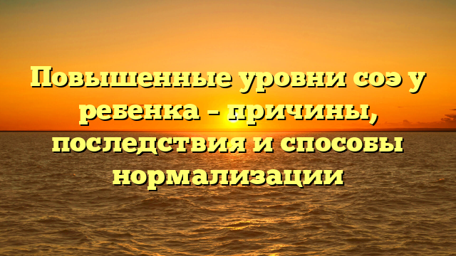 Повышенный уровень СОЭ (скорость оседания эритроцитов) в крови ребенка может быть вызван различными факторами, среди которых: